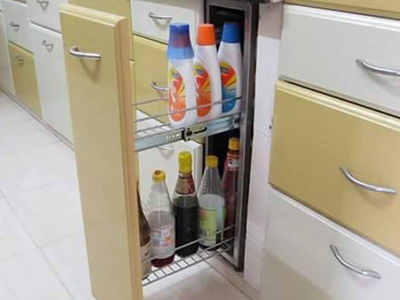 We offer Kitchen Accessories like Corner places in the kitchen platform are not in use properly. We have special product to utilize the corner places maximum carrousel, d-tray, magic corner etc. Pullouts are available for keeping small bottles and boxes. Single pullout, detergent pullout etc.